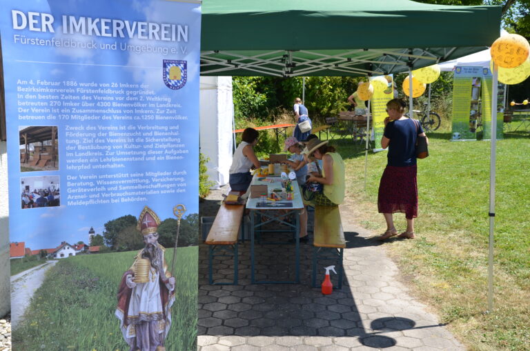 Neben vielen weiteren Institutionen aus dem Land- und forstwirtschaftlichen Bereich präsentierten wir uns als Imkerverein mit viel Wissenwerten über die Imkerei, süßen heimischen Honig diverser Mitglieder(innen) aus dem ganzen Landkreis FFB sowie Kerzen basteln nicht nur für Kinder.