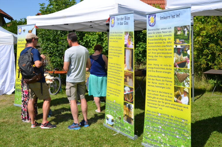 Trotz heißen Sommerwetter fanden viele Besucher den Weg zur Veranstaltung und wir freuten uns auf nette Kontakte und großes Interesse an der Imkerei und unseren Bienen.